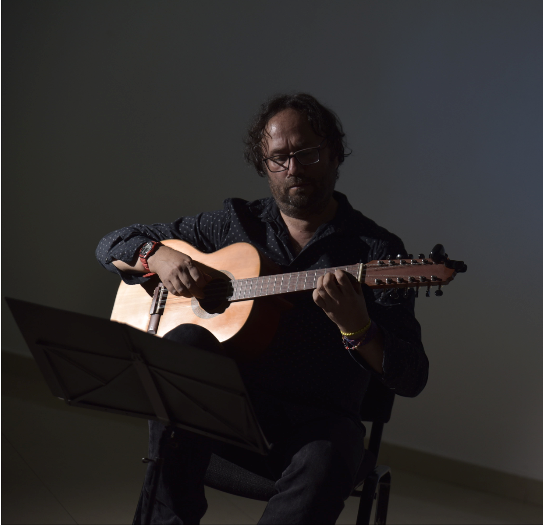 Juan Camilo Palacino (@jcpalacino) nos invitó a reflexionar a través del viaje sonoro de la guitarra sobre el mundo y las maneras en que se ejercen relaciones de poder que reducen a los seres humanos a ciclos de violencia, guerra y dolor.